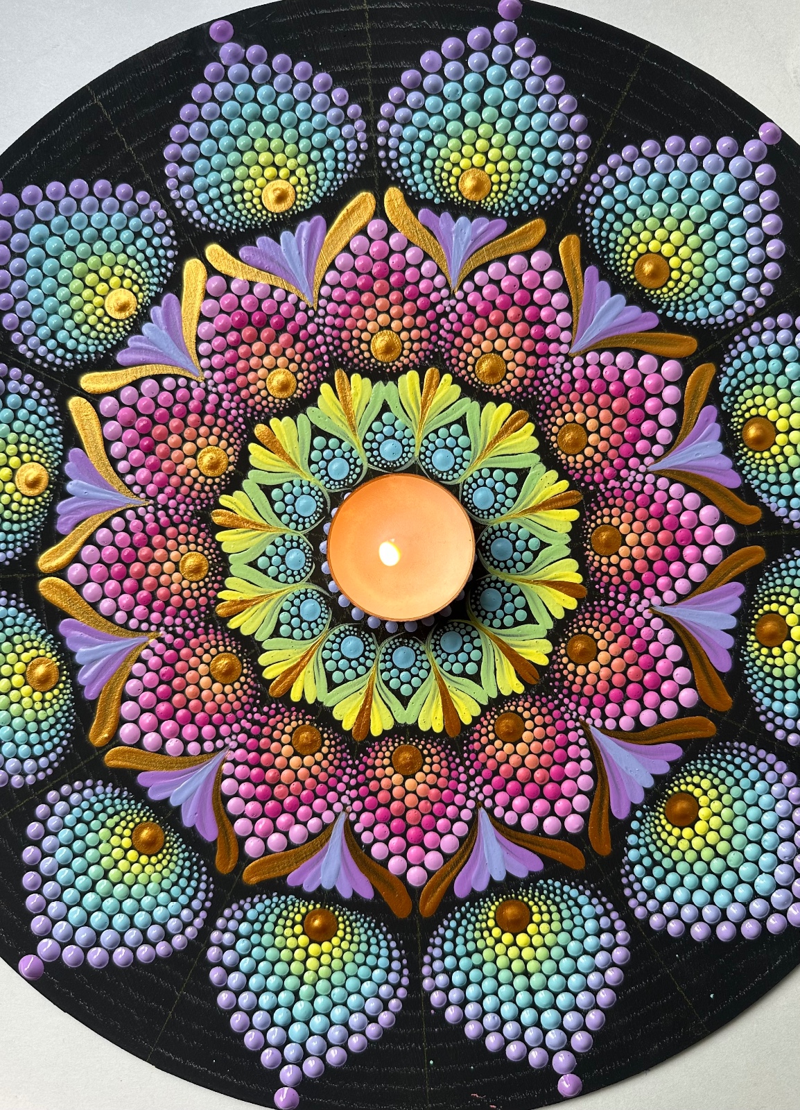 Te comparto todo mi conocimiento sobre el color, el fenómeno Iridiscente, la creación de una paleta bellísima y única, y la manipulación correcta para lograr de forma óptima arrastres con pincel, en éste curso completo, el cual incluye la Máster Class, las creaciones de los diseños de tres mandalas con pincel y el Bonus especial con la guía paso a paso para que puedas crear tu "Espejo Destellos" a sólo $28.000!